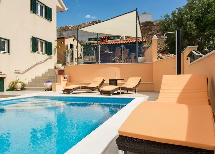 Poolside Apartment House Nina 特罗吉尔距离宫殿不到3.7公里,拥有许多便利设施,其中包括室外游泳池,日光浴和温水游泳池. 市中心距离住宿处4公里;这套公寓距离圣老楞佐主教座堂3.6公里.